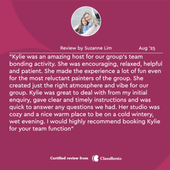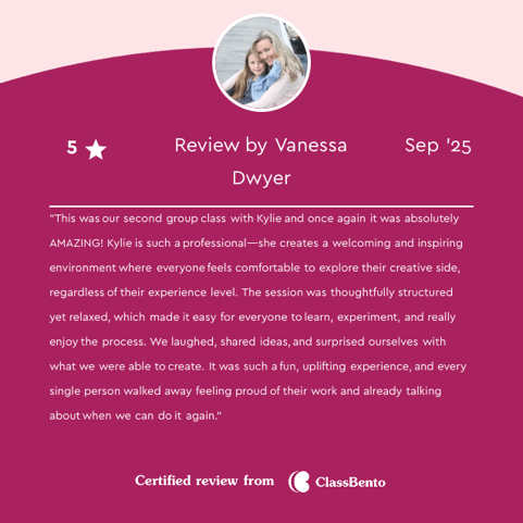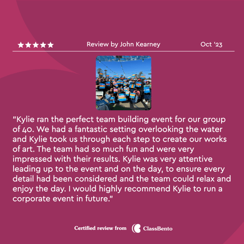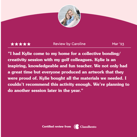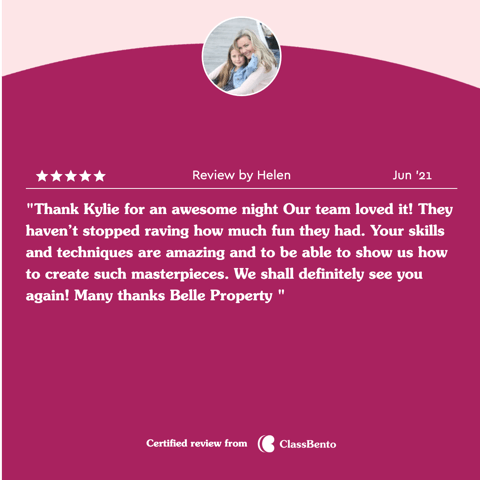 Perfect for corporate team building activities, Wellbeing Workshop events, hens parties, mothers groups, birthday celebrations, and end-of-year social events, Kylie’s sessions are therapeutic, fun, and inspiring.