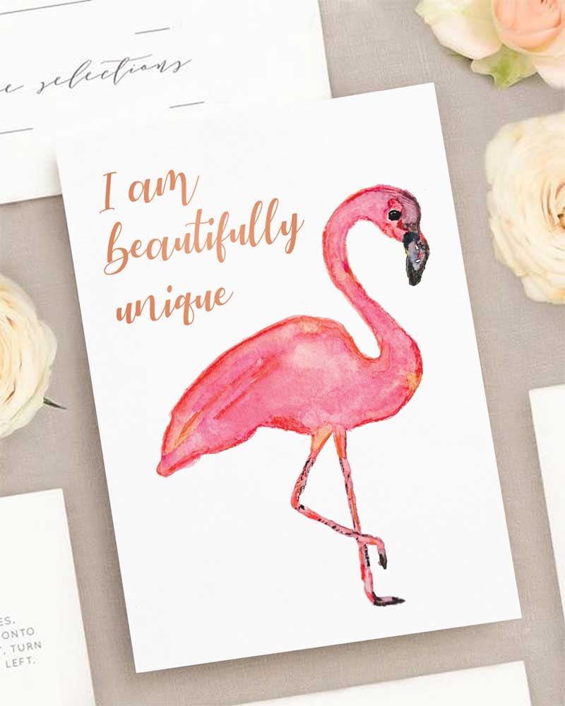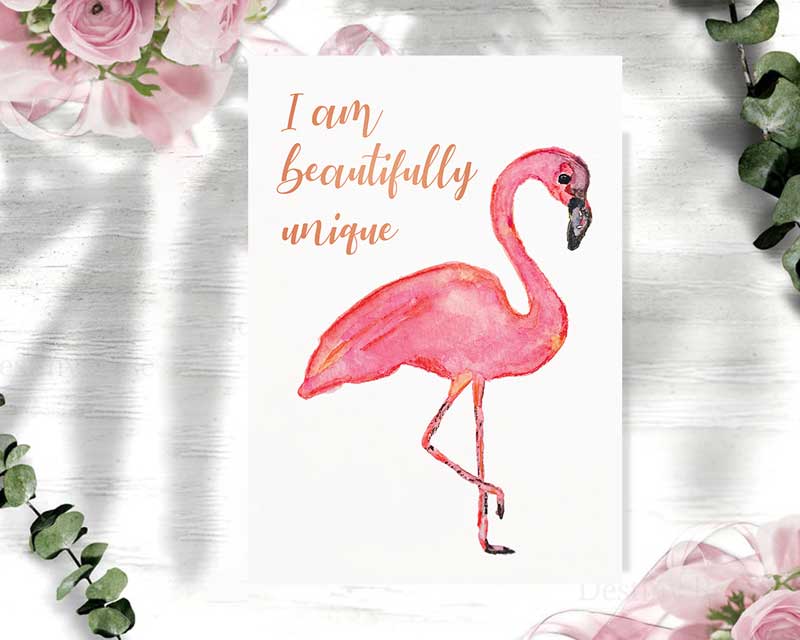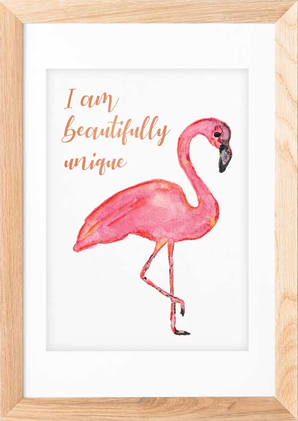 Flamingo Art – I Am Unique | Kids Affirmation | Positive Wall Art