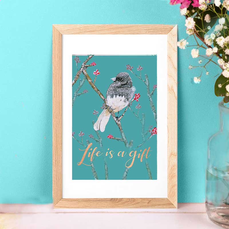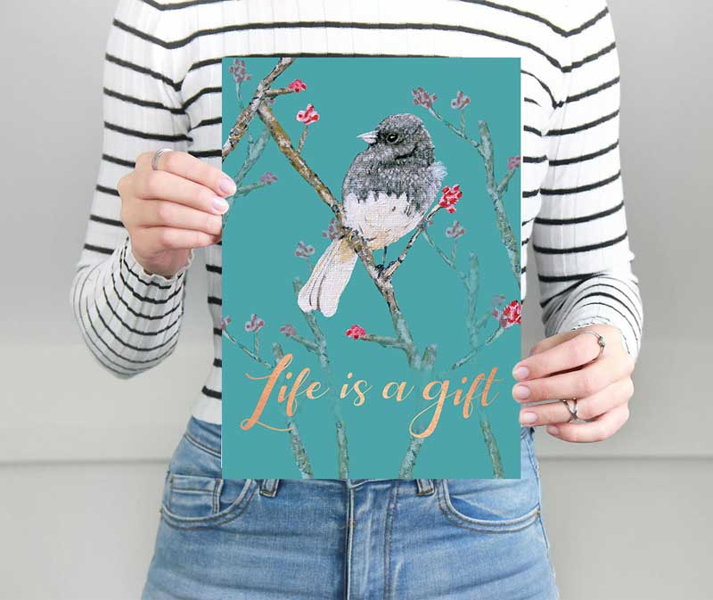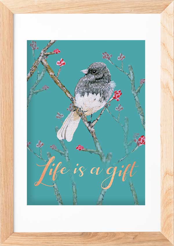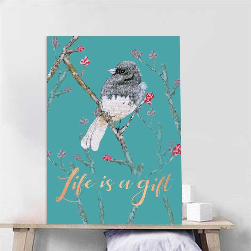 Life Is a Gift – Bird Artwork | Gratitude Quote Wall Art